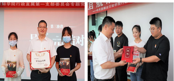 现场还举行了“学生成长导师”聘任仪式,傅关福等8位党员教师受聘为“学生成长导师”,与16位学生结对并互赠书籍和聘书。