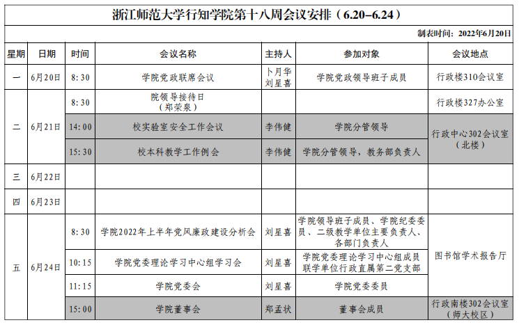 第十八周会议安排(6.20-6.24)