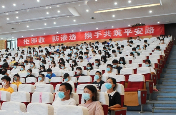 兰溪市委政法委安全稳定指导室副主任朱扬枫作了题为《无邪青春,无悔青春》的主题讲座,他向大家介绍了邪教的定义、邪教与宗教的区别以及辨别方法。他引用了真实案例生动阐述了邪教对个人及社会的双重危害性,呼吁师生切实提高对邪教的自身防范能力——增强辨识力、提高认识力、增强抵御力。