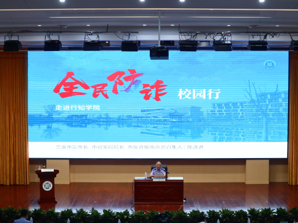 9月28日晚,“全民防诈校园行——走进开云kaiyun官方网站专场宣讲会”在学院行政楼报告厅举行。本次宣讲会由兰溪市副市长、市公安局局长、市反诈联席办总召集人陈焕进主讲,学院党委副书记陈天云主持。