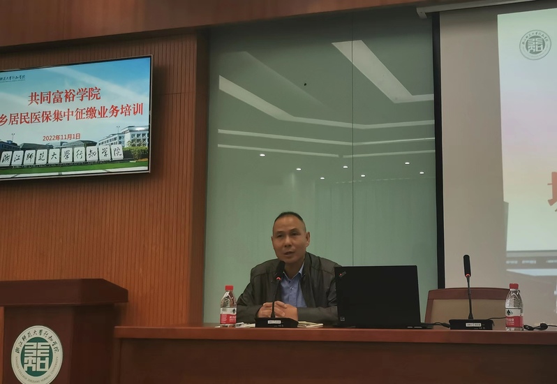 为高水平、高质量推动公共服务优质共享,进一步优化公共服务布局,牢筑共同富裕基石,我院共同富裕学院于11月1日下午在图书馆报告厅举办城乡居民医保集中征缴业务培训会。兰溪市税务局、医保局、教育局相关领导、各乡镇(街道)分管领导及医保代办员、兰溪农商银行分管领导及相关工作人员参加培训。