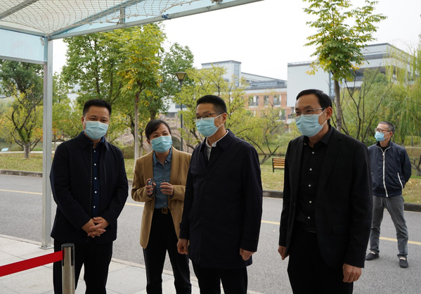 11月18日下午,兰溪市委书记戴翀、副市长单玲琳来我院检查疫情防控工作。学院院长施俊天、党委书记刘星喜陪同检查。