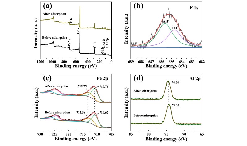 本研究通过将Fe离子负载于WTR,合成了一种新型材料Fe-WTR,显著提高了除氟效率。同时,通过批量吸附实验、X射线荧光光谱法和X射线光电子能谱法等多种手段对Fe-WTR的物理化学性质进行了表征,并揭示了其与F相互作用的过程机制。结果表明,F-与Al3+、Fe3+的络合反应及其与OH-的离子交换作用在吸附过程中起主要贡献;Fe-WTR具有良好的抗共存阴离子干扰能力,可以有效应用于大多数环境。该研究可为今后F污染的治理修复提供一种基于WTR资源化利用的新策略,并为WTR的进一步改性优化提供理论依据。