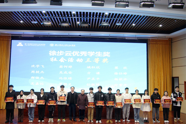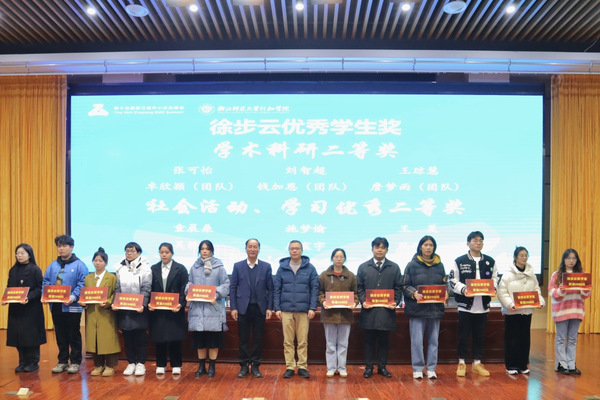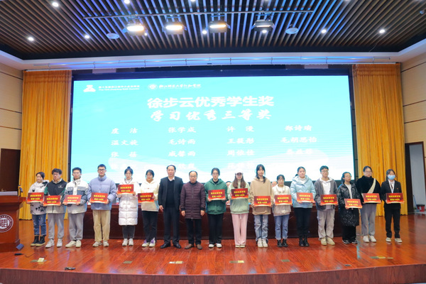 徐步云、施俊天为优秀教师奖,社会活动、学术科研一等奖学金获得者颁奖。程明松、倪应华为步阳励志奖学金,学术科研、社会活动、学习优秀二等奖学金获得者颁奖。蒲万毅、林祝亮为社会活动三等奖学金,学习优秀三等奖学金,学术科研、专业技能三等奖学金获得者颁奖。