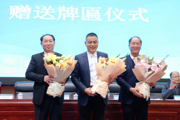 仪式上,施俊天向徐步云赠送牌匾,感谢其为学院师生奉献的爱心。