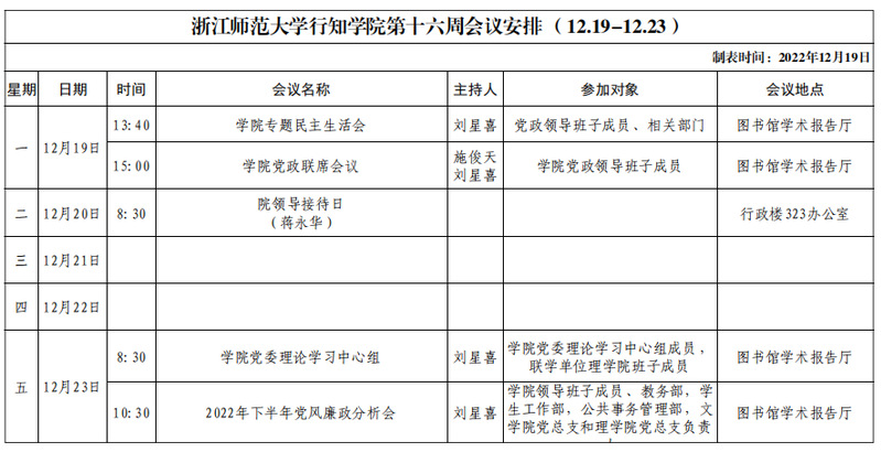 第十六周会议安排(12.19-12.23)