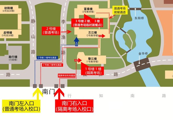 1.根据考生所在考场区域不同,分为两个入口进入校园(见图3),入校后即按严格限制通道进入对应考场区域,请考生务必按照规定入口进校,以免因走错入口而误考。