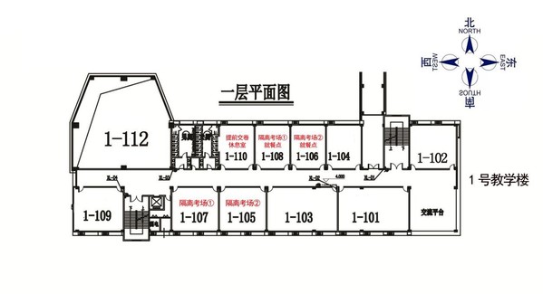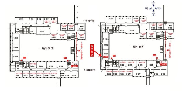 普通、备用考场设在2号教学楼2-3楼(见图1),隔离考场设在1号教学楼1楼(见图2)。