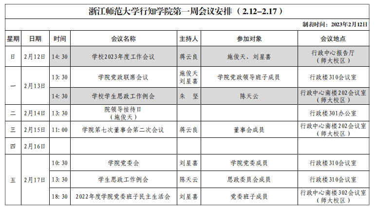 第一周会议安排(2.12-2.17)