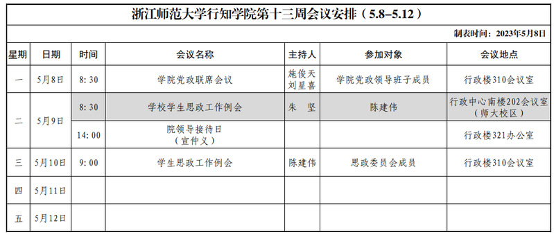 第十三周会议安排(5.8-5.12)
