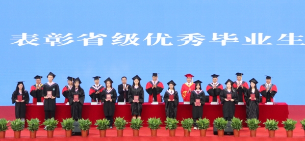 学院表彰了2023届省级优秀毕业生,主席台领导为他们颁发荣誉证书。
