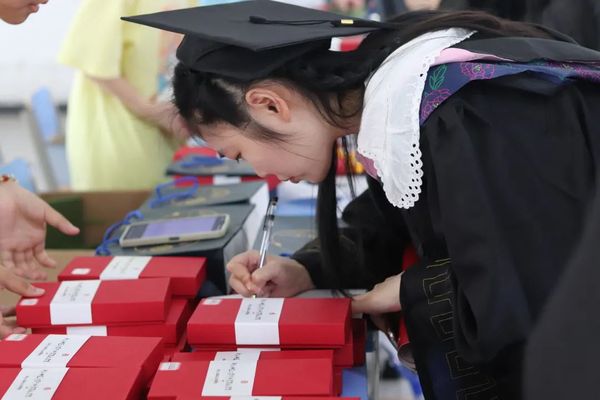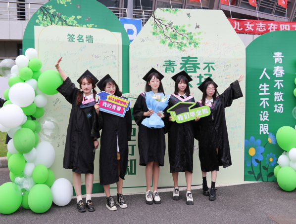 就此挥手与往日作别,回首是繁花满地,未来亦是光明坦途。今欣逢佳日,祝各位学子毕业快乐!