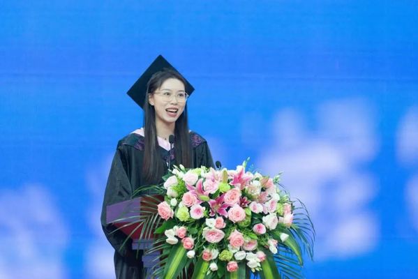 毕业生代表杨晓蕾上台发言,她首先代表全体毕业生,向辛勤培育行知学子的领导和老师表示由衷的谢意。杨晓蕾分享了她四年来的心路历程以及与行知的美好回忆,并向母校和广大教职员工献上诚挚祝福。