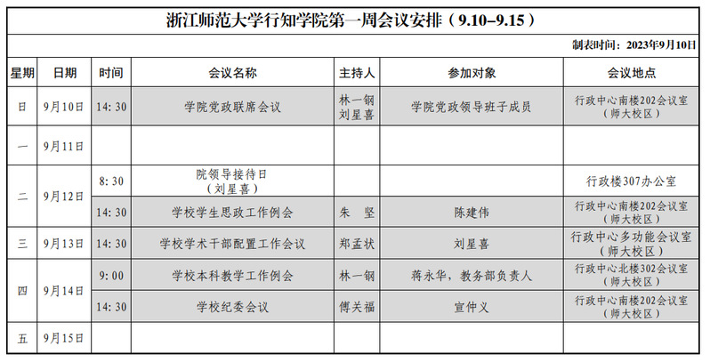 第一周会议安排(9.10-9.15)