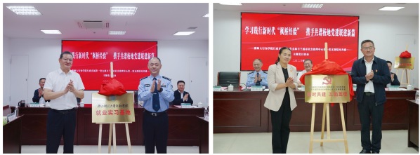 会上,还举行了聘任和揭牌仪式。傅关福和陈焕进共同为就业实习基地揭牌,吕迎春和李益民一起为支部结对共建基地揭牌。李益民为学院行政直属第一党支部两名党员、心理健康服务中心专职心理咨询师赵姝慧、包玉洁颁发了兰溪市社会治理中心心理咨询顾问聘书。刘星喜为兰溪市社会治理中心童庆荣、周秀芬颁发了校园矛盾调解指导员聘书。
