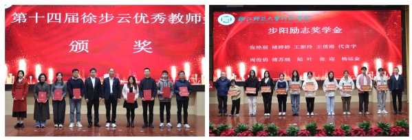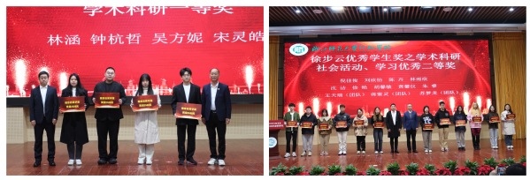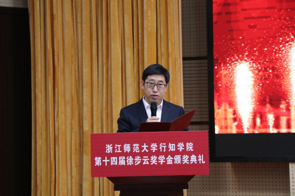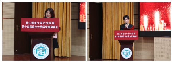商学院李金宁老师作为获奖教师代表发言。她认为,徐步云奖学金、奖教金对于师生而言是一种莫大的支持与鼓励,并对此表示感谢。作为国际贸易专业的教师,她一直致力于将优质专业资源与课堂教学紧密结合,把优秀的企业家请进课堂,把自身的科研成果融入竞赛,拉近理论和实践的差距,缩小课本与岗位的距离。工学院电子信息工程专业的宋灵皓同学代表全体获奖学生发言。他感谢徐步云先生对行知学子的关怀,分享了自己作为学生干部的成长历程,并激励同学们回馈社会,做时代的弄潮儿。