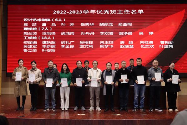 根据相关文件要求,经各二级学院考核推荐、学院审定,评选出82名老师为2022-2023年度优秀班主任,与会场领导逐一为他们颁发了获奖证书。