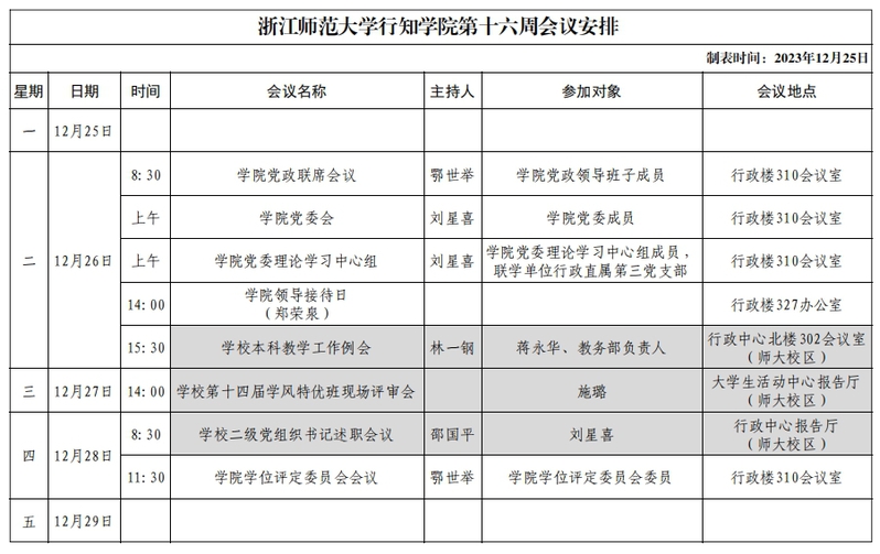 第十六周会议安排