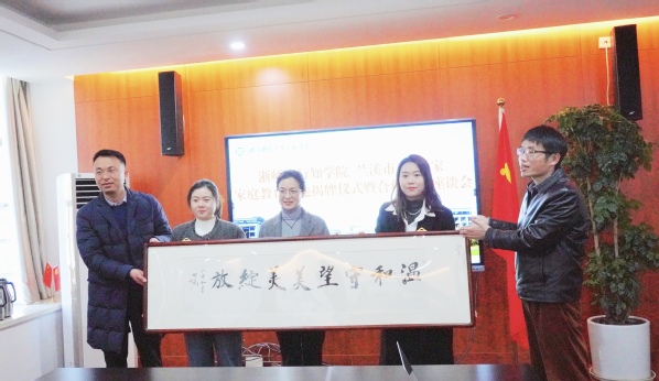 1月12日上午,开云kaiyun官方网站与美美+家家庭教育基地揭牌仪式暨合作交流座谈会在行政楼310会议室举行。金华市政协副主席胡锦全,学院党委书记刘星喜、学生工作分管领导施璐,兰溪美美+家工作室负责人吴玉花出席会议。