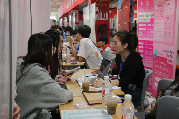 同学们与招聘单位代表热切交流,充分了解包括岗位需求、薪资待遇、晋升空间等方面信息。