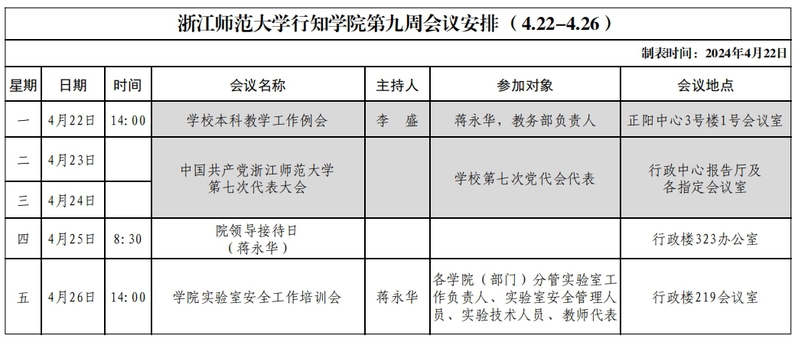第九周会议安排