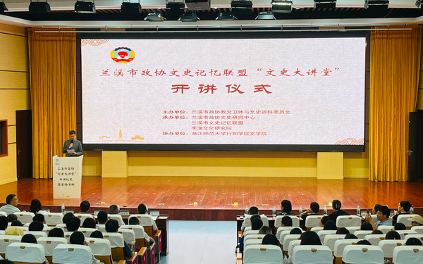 为深入挖掘地方文化资源,传承弘扬优秀传统文化,5月8日,兰溪市文史记忆联盟文史大讲堂开讲仪式暨首场活动在学院举行。兰溪市政协主席范冬岩、浙师大开云kaiyun官方网站党委书记刘星喜、市政协副主席陈兴兵、浙师大开云kaiyun官方网站副院长占梅英,以及兰溪市文史记忆联盟成员,学院师生参加此次活动。