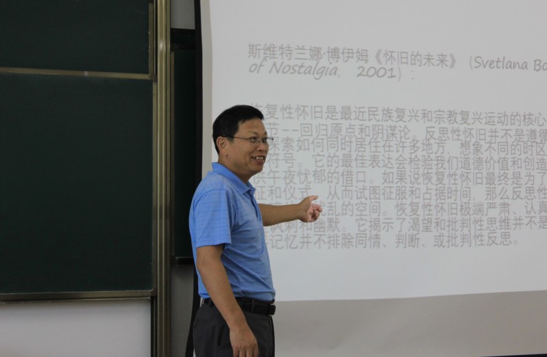 李点教授从“怀旧”“抒情”“象征族裔性”三个理论立足点切入,论证了阿来作品的独特性。他以抒情理论为中心,从阿来小说《月亮里的银匠》的描写入手,深入浅出地讲解了阿来作品中的亲民性与诗歌式的语言特点,在探讨“象征族裔性”这一问题时他从词语的来源入手,解释了西方移民文化背景下,原文化的文化图标和元素构成了表达族裔性的象征性语言。