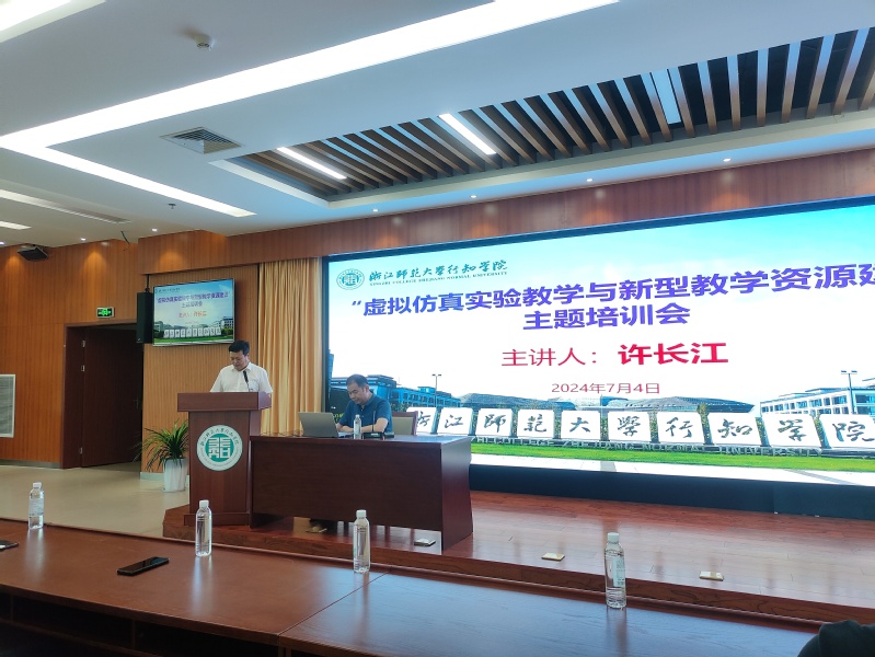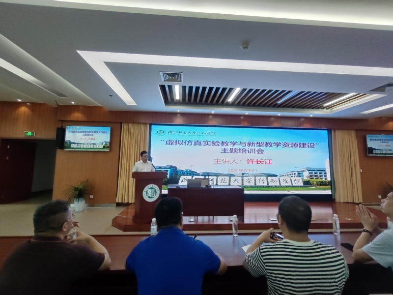 7月4日上午,蒋永华副院长在图书馆学术报告厅主持召开了《虚拟仿真实验教学与新型教学资源建设》的专题讲座,会议邀请了许长江(北京中教仪科技有限公司运营总监、中国教育装备行业协会高教装备分会副秘书长)进行专题报告。各二级单位分管教学、实验院长(主任),虚仿项目负责人以及教师代表参加了此次交流。