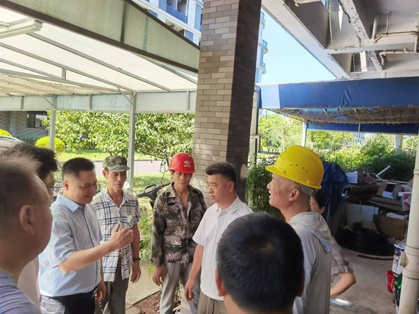 刘星喜一行先后到达了行政楼消控室改造工程现场、学院南大门保卫室、教学楼连廊改造工程现场、午禾园食堂、10-11号学生公寓大厅、医务室、后勤基础保障部、绿化组等地点。每到一处,刘星喜都与一线工作人员亲切交谈,详细了解各项工作进程,感谢他们在高温下坚守岗位,为推进学院各项工作作出贡献。同时,他叮嘱大家在工作中要注意防暑降温,关注自身健康,并送上“清凉”慰问品及防暑药品。
