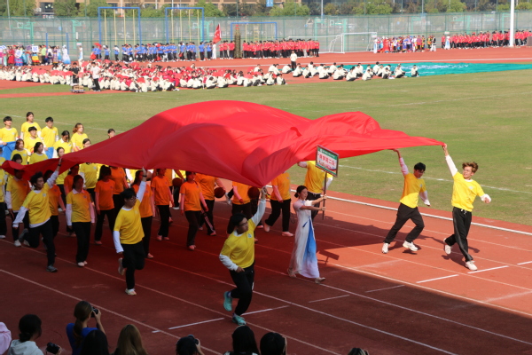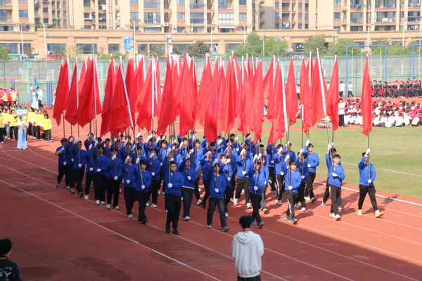 踏着强健的脚步,鲜花队、彩旗队向主席台走来。彩旗灵动,鲜艳多彩,他们激情澎湃,意气风发,带着对盛会的美好祝福,将蓬勃的生机与活力洒满整个行知校园。