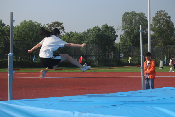 田径场上,运动员们燃烧激情,奋力冲向终点线,跑出青春加速度。跳高运动员们加速助跑、起跳、腾空,以奋勇之姿,全力以赴,赛出青春新高度。