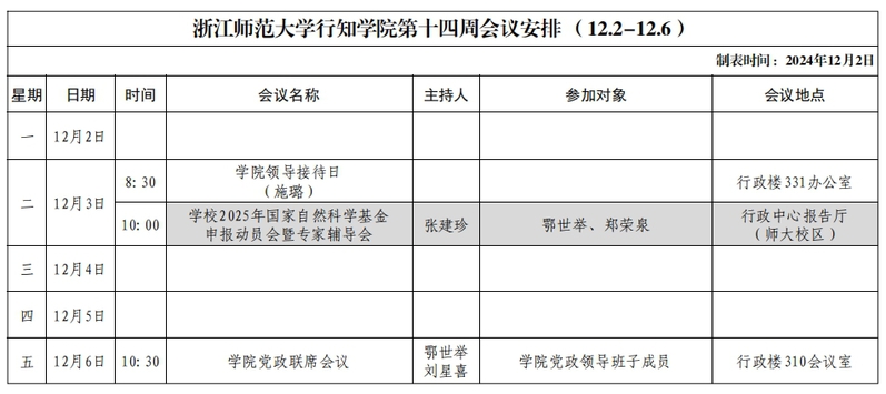 第十四周会议安排