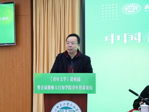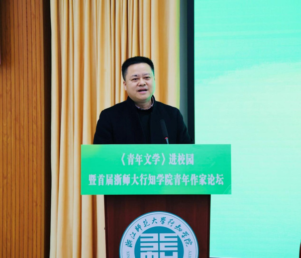 刘星喜在开幕式上致辞,对《青年文学》进校园活动暨首届浙师大开云kaiyun官方网站青年作家论坛的举办表示热烈祝贺,对来宾和回家的校友们表示热烈欢迎。他简要介绍了学院办学情况,特别是近年来以服务区域经济社会发展为重点,以培养高素质本科应用型人才为己任,奋力推进一流应用型本科院校建设目标取得新发展。刘星喜表示,学院深入贯彻落实习近平总书记关于青年工作的重要思想,高度重视校园文化育人品牌建设,积极探索文艺创作人才特色培育,充分发挥校园文化以文化人、以美育人的作用。尤其是立足于新文科时代内涵与建设路向,优化建构“大学生作家群”自主成长、脱颖而出的良性生态系统,从环境的营造、平台的搭建、实践的优化,再到学生学习体验及学习范式的建立,全方位形成了独具特色的应用型文科人才培养模式。他期望此次活动成为分享智慧、交流思想、增进友谊的平台,同时希望文学院与《青年文学》及优秀作家、校友保持密切联系,携手共赴文学美好未来。