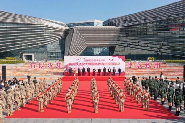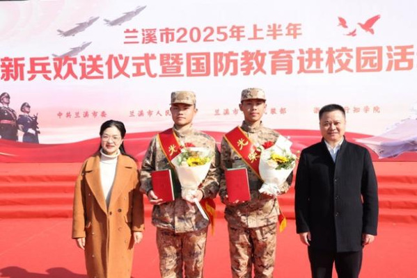 3月17日上午,学院图文广场红旗飘扬、军歌嘹亮,兰溪市2025年度春季入伍新兵欢送仪式暨国防教育进校园活动在此隆重举行。学院党委书记刘星喜、学生教育管理工作负责人施璐与兰溪市委副书记、市长朱俊华等领导共同为即将踏上军旅征程的62名新兵送行,其中2名行知学子身披绶带、胸戴红花,在师生们的热烈掌声中光荣启程。