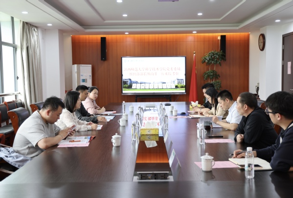 4月16日下午,江西师范大学科学技术学院党委委员、组织部部长熊南菲一行来到我院,就党建及干部工作进行调研交流。学院党委副书记陈建伟出席,党建工作部、设计艺术学院相关负责人陪同调研并座谈。
