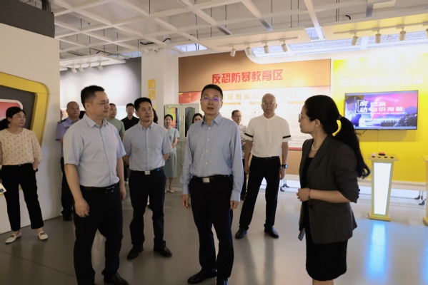 会前,戴翀一行实地考察了学院综合治理中心和安防体验中心,对学院构建的“教育引导、综合服务、校警联动、平安共建”一体化平台给予高度评价,特别肯定“沉浸式安全教育模式走在全市前列”,希望进一步扩大安全教育覆盖面。