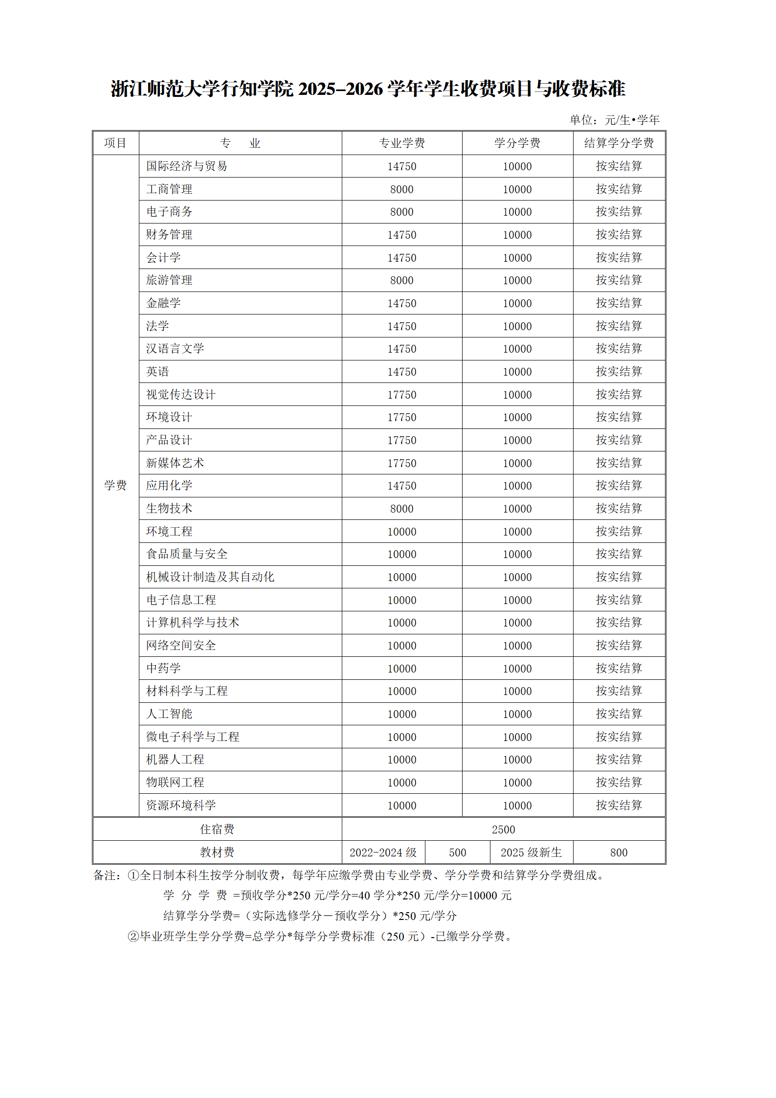 开云kaiyun官方网站2025-2026学年学生收费项目与收费标准