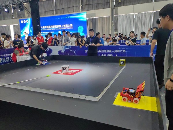 据悉,中国高校智能机器人创意大赛创办于2017年,于2020年列入中国高等教育学会发布的全国普通高校大学生竞赛排行榜,是目前国内技术挑战性最强、影响力最大的机器人竞赛之一。本届比赛以“更好、更快、更强”为主题,将机器人创意设计、创意竞技、创意对决融为一体,旨在为青年学子提供展现专业特长、彰显非凡创造的舞台,搭建深化产研融合、激励创新创业平台。