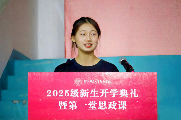 我辈执新笔,挥墨定乾坤。文学院的蒋文慧同学代表全体2025级新生许下承诺:适应新程,立稳求学之基;勤学善思,筑牢成才之基;坚守初心,抗起青年之责。