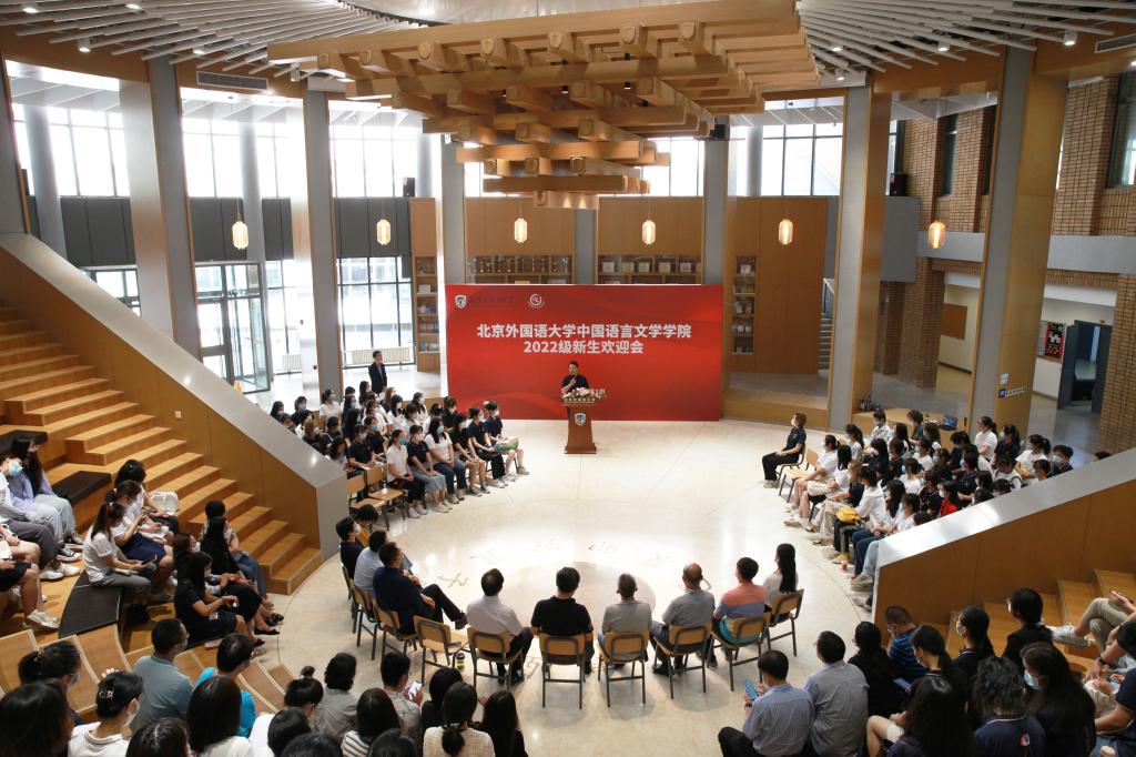 姚琼斐同学和丁俊峰同学分别作为本科生、研究生在校生代表发言。姚琼斐回答了“为什么在外语院校学中文”的问题,介绍了中文系学生的“三宝”——良师、益友和良好的读书习惯,表达了身为中文学子的自豪;丁俊峰希望新生以目标之心、平和之心和开拓之心迎接新的身份,互相学习,共同成长。