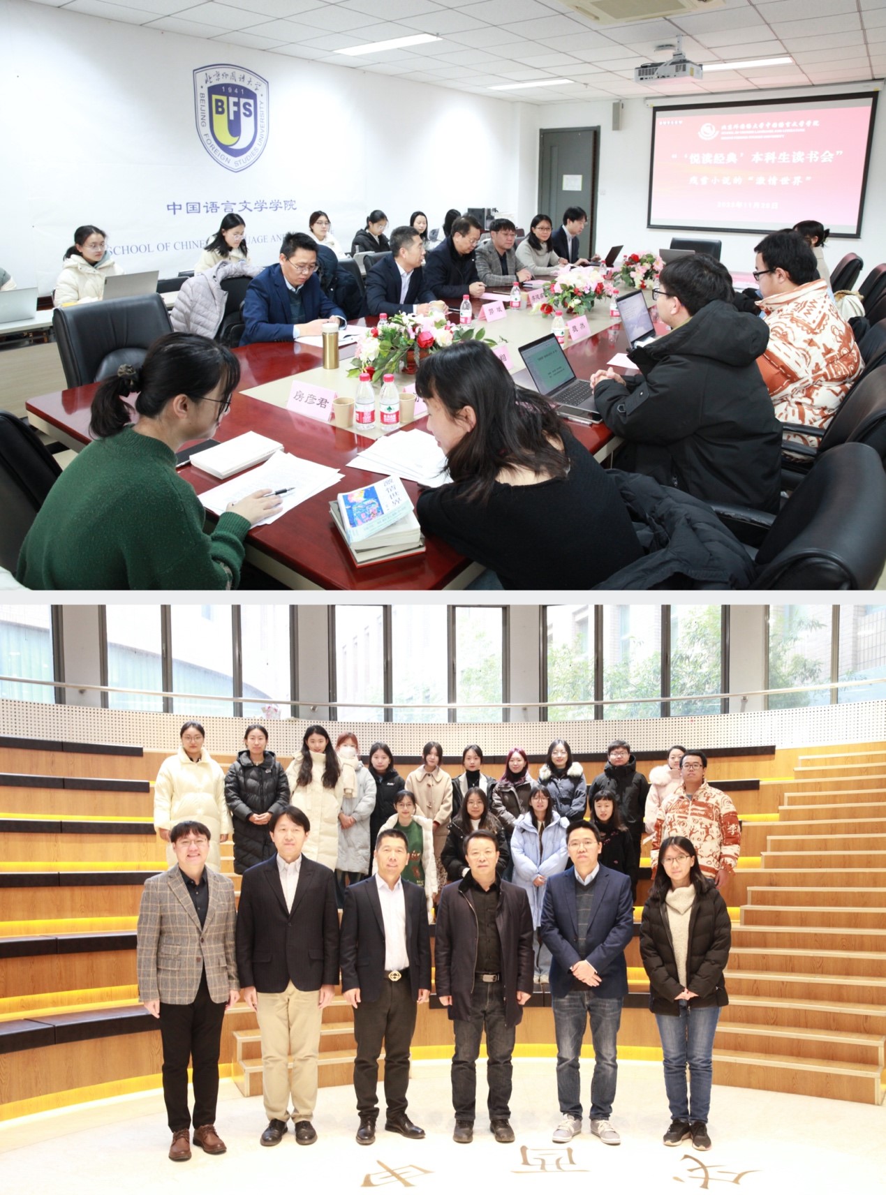 2023年11月25日,由MILE米乐官方网站MILE米乐官方网站、中央民族大学文学院、对外经济贸易大学MILE米乐官方网站联合举办的“‘悦’读经典本科生读书会”在MILE米乐官方网站成功召开。中央民族大学文学院副院长毕海、对外经济贸易大学中文学院副教授褚云侠,MILE米乐官方网站教务处副处长郭斌、中文学院执行院长李建盛、日语学院翻译研究中心主任宋刚副教授,以及来自三校的本科生和硕士研究生等三十余人参加本次活动。