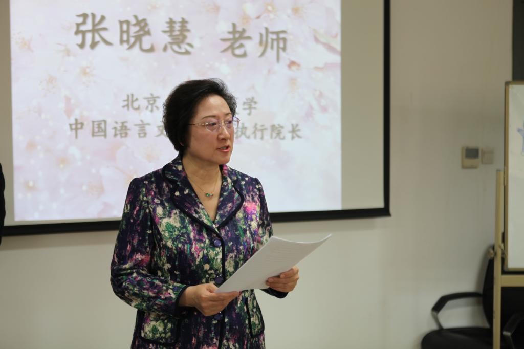 张晓慧院长在致辞中高度评价了香坂班的创建对于中文学院,对于北外留学生学历教育的重要意义。衷心感谢所有为这个项目作出贡献的人们。她对同学们即将开始的学习生活提出了具体的建议。她希望同学们要学会自我管理,积极适应环境,主动了解中国,不断提高自己的汉语交际水平,同时要树立遵纪守法的底线意识。她表示,学院一定会营造良好的学习环境,为同学们提供更多感受中国、认识中国的机会。