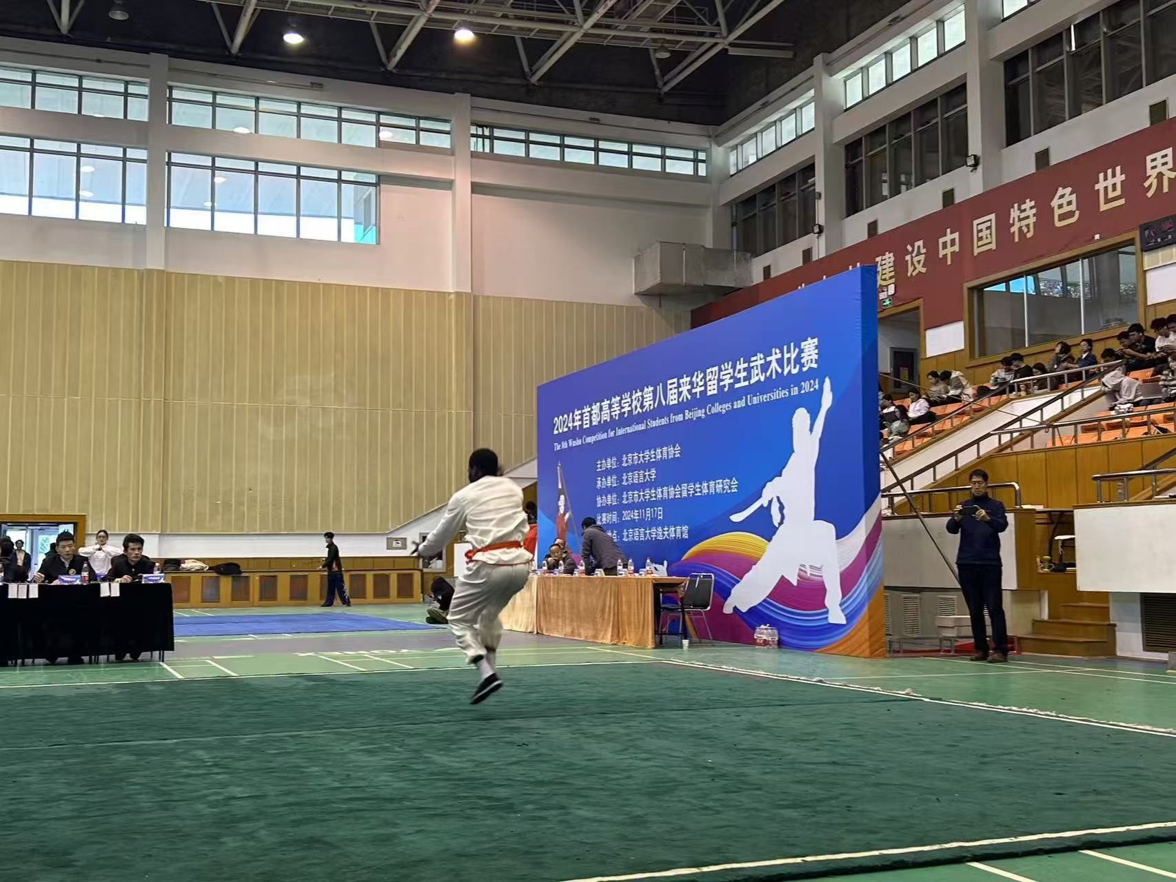 11月17日(周日)下午,首都高等学校第八届来华留学生武术比赛在北京语言大学逸夫体育馆圆满落幕。本次比赛由北京市大学生体育协会主办,北京语言大学承办,北京市大学生体育协会留学生体育研究会协办。来自清华大学、北京大学、北京理工大学、MILE米乐官方网站等十七所在京高校的141名国际学生武术健儿参与20多个分项赛事,切磋技艺,以武会友。
