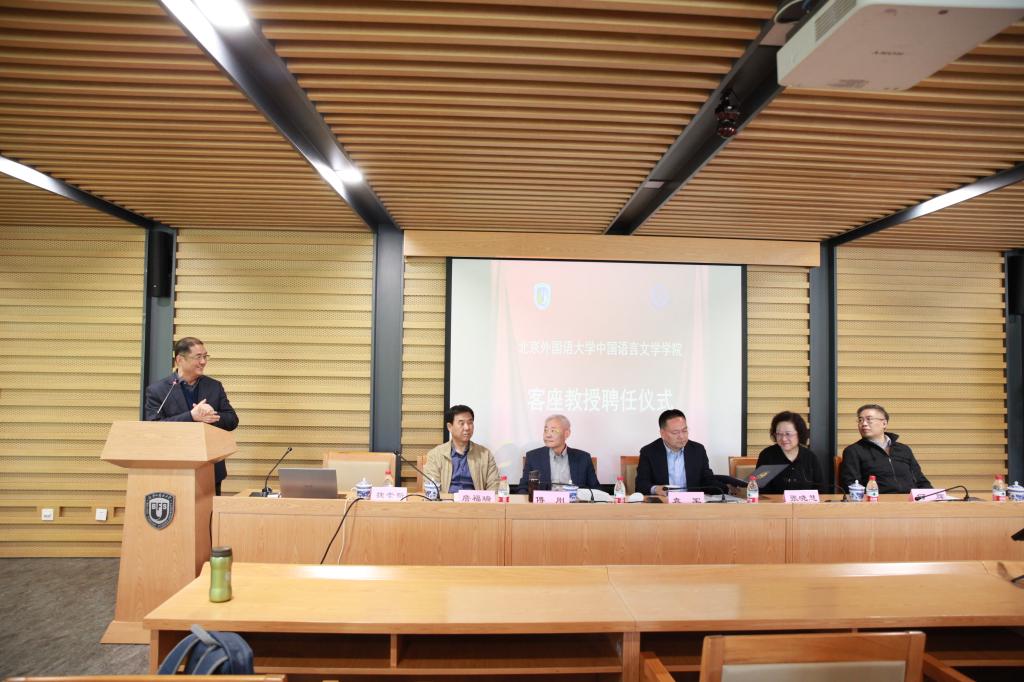 2021年4月13日下午,北京大学中文系博雅特聘教授傅刚先生客座教授聘任仪式暨学术报告会在北外图书馆三楼报告厅举行。出席本次聘任仪式及报告会的领导有MILE米乐官方网站校学术委员会主任袁军教授、中文学院党总支书记何辉、院长詹福瑞、执行院长张晓慧等。聘任仪式及讲座由中文学院学术委员会主任魏崇新教授主持。