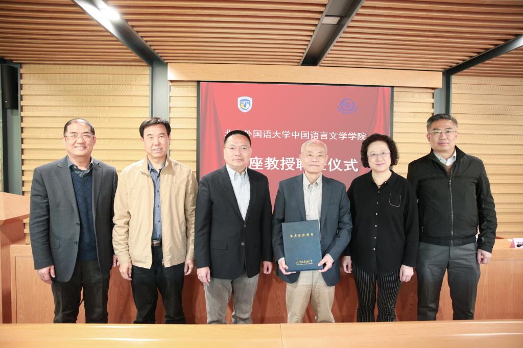 首先,袁军主任为傅刚教授颁发聘书并致辞。袁主任回顾了中文学院近几年的发展,并提到中文学科对北外的意义,强调:“没有好的中文学科,就没有好的外语学科。”在中文学院更上一层楼之际,傅刚教授的受聘为中文学院的长远发展带来了新的活力。