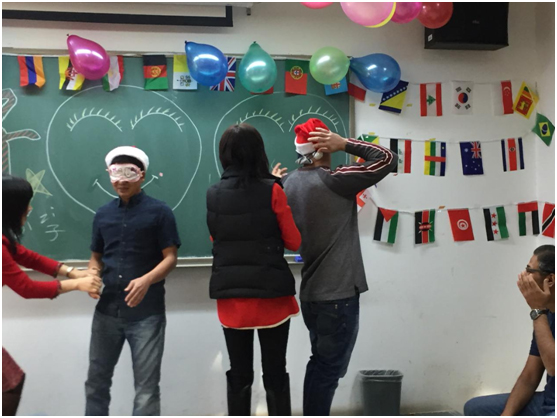 在项目部老师的精心组织和学员的踊跃帮助下,大家分工合作,用国旗、气球、彩带布置会场,下午两点,联欢会正式开始。