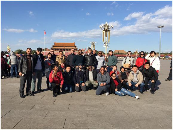 经过一个上午的认真学习,下午:30,来自27个国家的30名学员与四位老师乘坐校车准时出发,下车之后,学员们步行穿越天安门广场,前往故宫。有了军训期间观看升旗仪式的经历,学员们对下午阳光明媚的天安门广场既亲切又新奇,频频驻足留念。