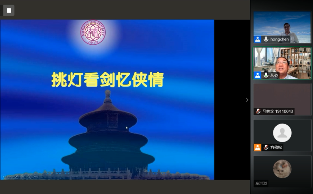 9月7日,国家级教学名师、国家高层次人才、南开大学跨文化交流研究院院长、天津市文联主席陈洪教授主讲《挑灯看剑说侠情——金庸小说的文化底蕴》,由文本阅读与作家交往入手,从中国传统文化的角度解读金庸作品,阐释金庸小说中深刻的传统文化蕴涵。