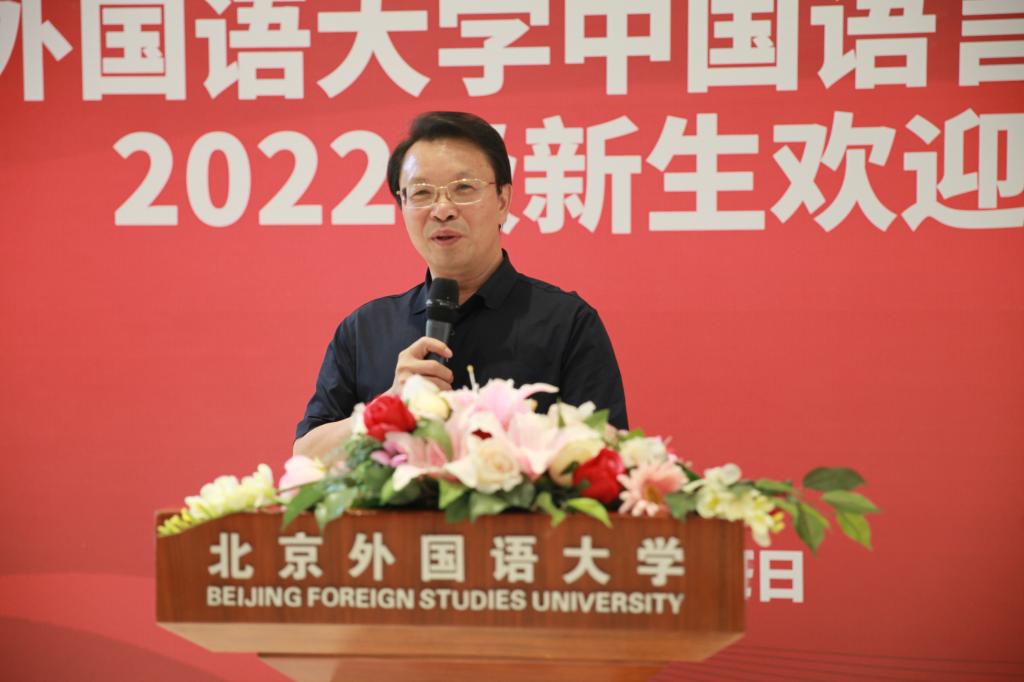 在庄严的国歌声中,迎新大会正式开始。2022级本科生叶峻峤、研究生刘晓璇和博士生梁心泉作为新生代表发言,分享她们对新生活的憧憬与喜悦。叶峻峤同学展望未来四年的学习生活,号召同学们学会独立自主,以乐观开放的心态克服茫然,通过自身所学让世界了解中国;刘晓璇同学心怀热忱,重新出发,渴望在更高的学习平台上全面发展,发挥自身特长,传播中国声音;梁心泉同学立志夯实学术基础,扩展国际视野,提升综合素质,燃烧自己为祖国的教育文化大事业发光发热。