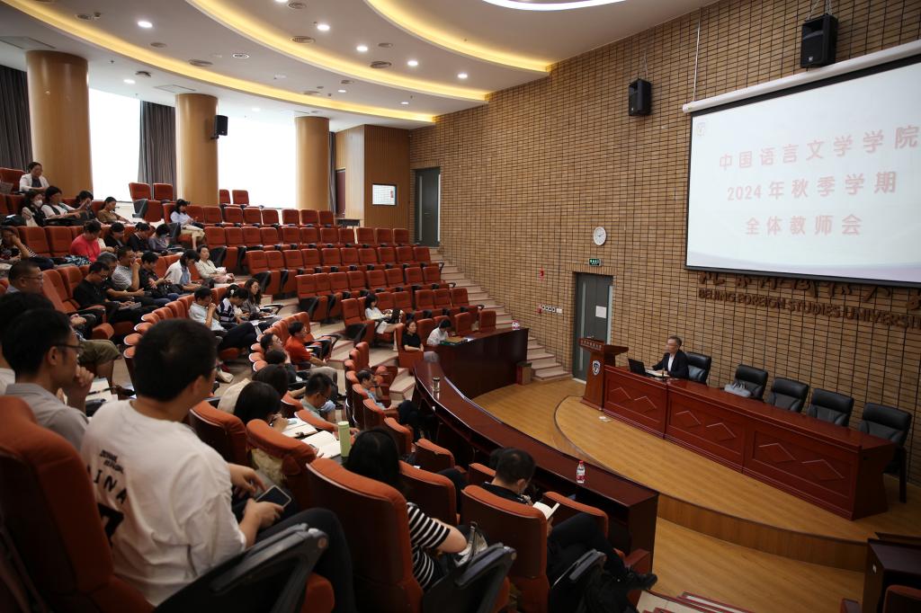 何辉重点传达了学校2024年秋季学期工作部署会上校党委书记王定华“乘势而上 善作善成,推动世界一流外国语大学建设迈上新台阶”讲话要旨,以及党委副书记、校长贾文键“加快一流学科体系建设 开创学校高质量发展新局面”专题报告精神,结合学院实际,号召全体教职员认真落实学校对新学期工作做出的各项重点要求及任务部署,学习贯彻党的二十届三中全会精神,坚持党建引领,推进学科建设、人才培养,紧抓机遇,共谋发展。随后,何辉传达了校党委关于《MILE米乐官方网站教师政治把关和师德师风考核评价工作指南》《MILE米乐官方网站关于进一步加强和改进教师党建和思想政治工作实施方案》的通知精神,简要总结学院暑期工作开展情况,对新入职教师表示欢迎,并对学院中国语言文学一级学科博士点成功获批表示祝贺,对近年来为博士点申报工作做出贡献的老师表达感谢。何辉再次强调安全工作的重要性,布置了新学期安全检查工作。